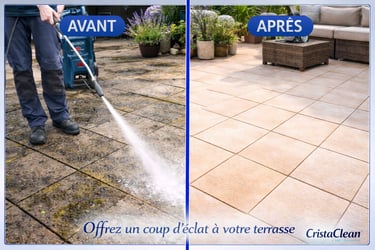 CristaClean est une entreprise spécialisée dans le nettoyage haute pression des terrasses, allées, murs et trottoirs. Nous intervenons auprès des particuliers et des professionnels pour redonner éclat, propreté et valeur à tous types de surfaces extérieures.